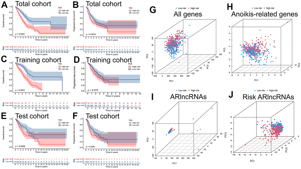 Evaluating the ARlncRNA prognostic signature and principal component analysis (PCA)