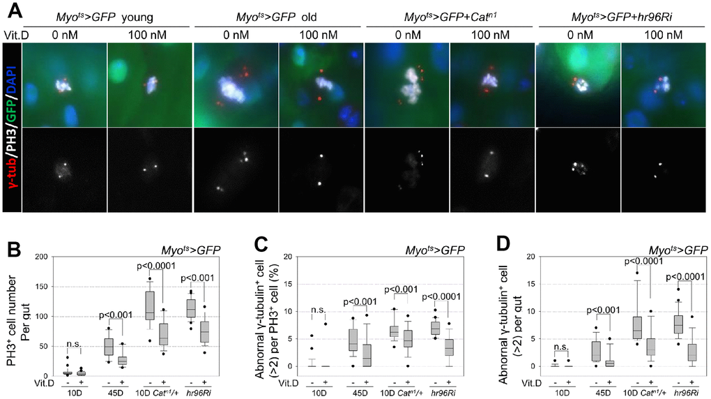 This study aimed to determine the protective role of VitD/VDR in differentiated ECs during ISC aging using the adult Drosophila intestine model.