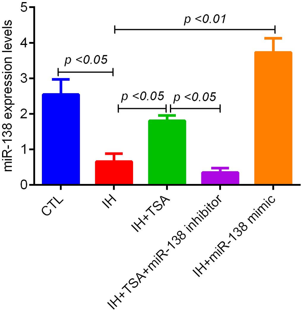 In the present study, we elucidated how IH affected miR-138 levels and explored the therapeutic functions of TSA in IH-induced mice.