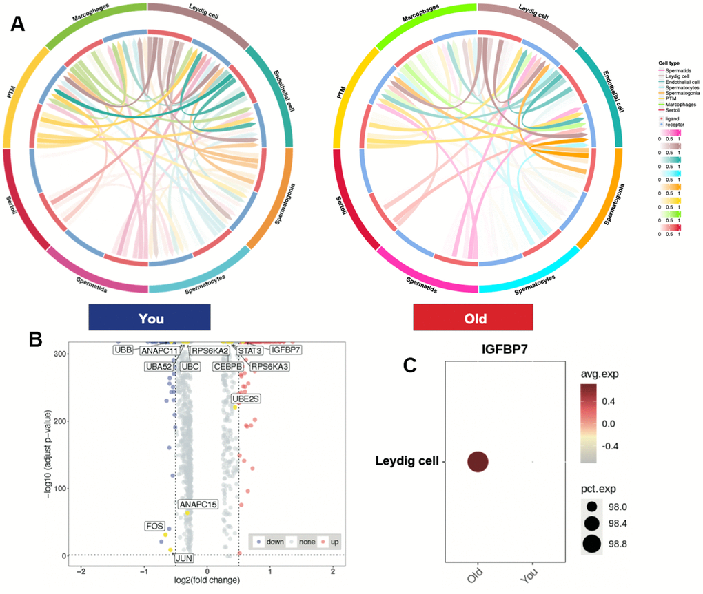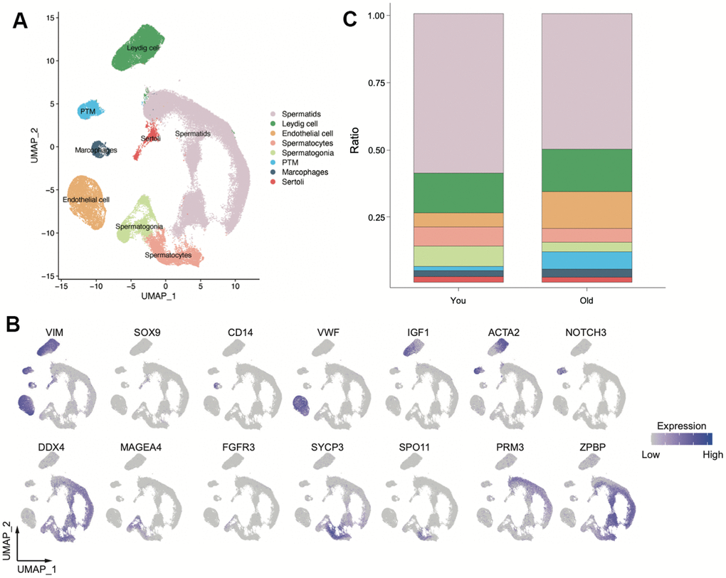 Nie recently generated single-cell transcriptomic sequencing and analysis in testes of young and old human exploring the correlation between testicular aging and elevated body mass index (BMI) and providing a comprehensive examination of functional changes in various cell types within aging testes [13]. However, they primarily focused on delineating functional changes in various cell types within the aging testes, with a notable absence of emphasis on senescence-associated secretory phenotype (SASP) factors in the context of testicular aging.