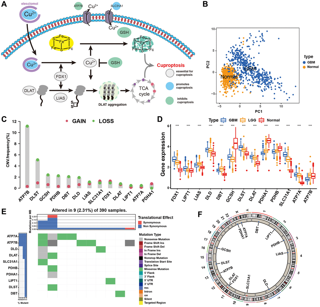 Landscape of genetic and expression variation of cuproptosis regulators in GBM