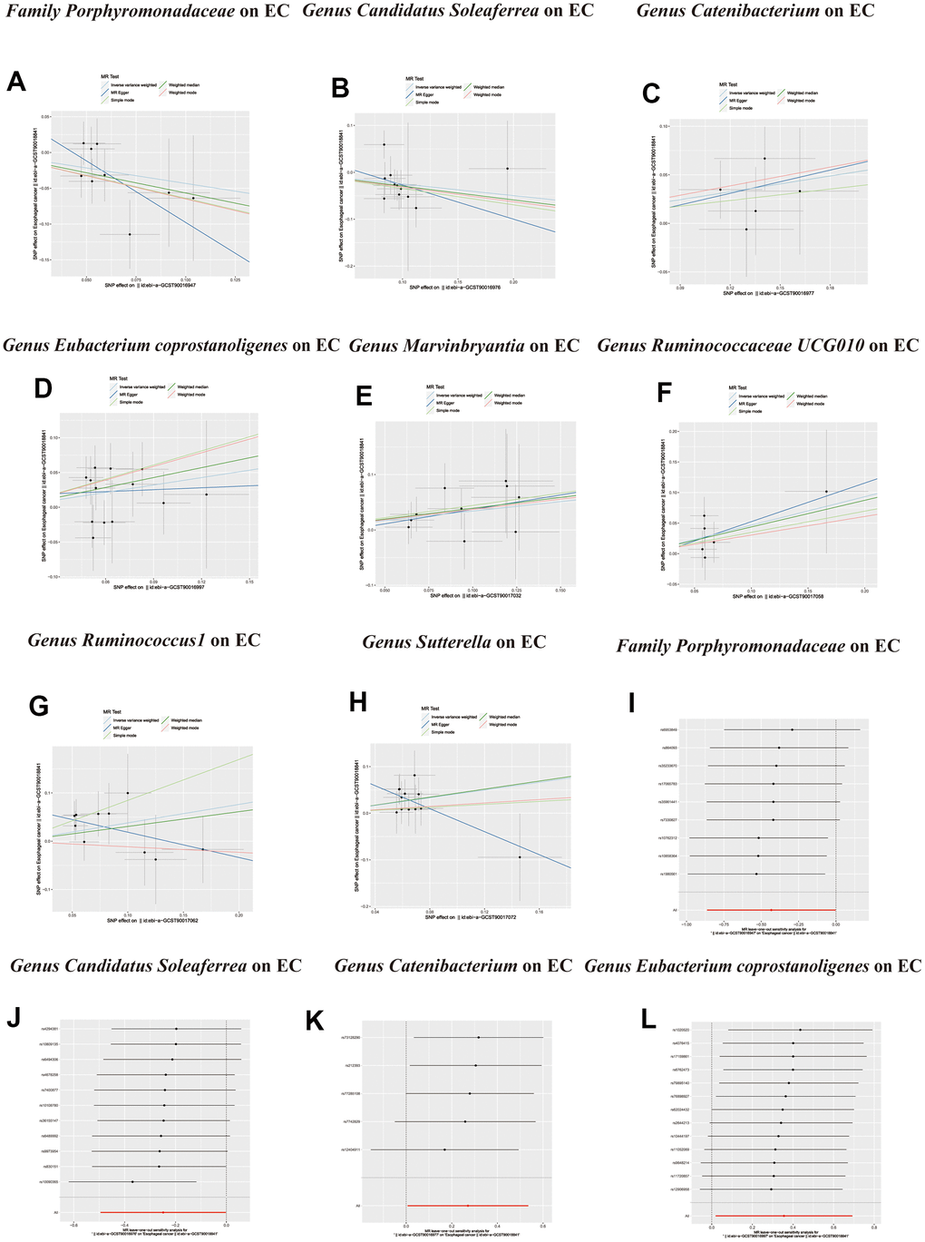 Table 2. Summary results of bidirectional MR (esophageal cancer on target gut microbiome).
