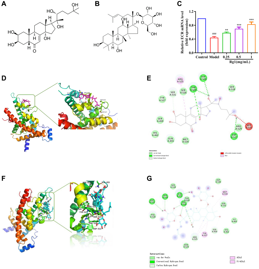 Molecular docking of ecdysterone and ginsenoside Rg1 with ECR