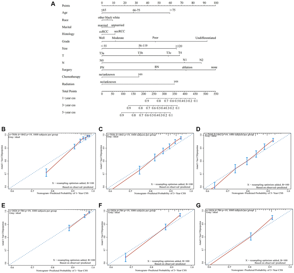 However, there are some limitations in this study. First, some crucial factors like smoking and alcohol intake were absent from the SEER database. The prognosis may be greatly influenced by these variables. Nevertheless, we attempted to include a number of key factors, such as the type of tumor, and other basic patient information in the database to reduce the potential impact of these variables. Furthermore, due to the nature of this study being retrospective, it is not possible to entirely eradicate selection bias. Future prospective studies are warranted to validate our findings. Finally, in order to determine whether our model is accurate and generalizable, we need to conduct external validation. In addition, we classify pRCC, unclassified RCC (URCC) and chromophobe RCC as nccRCC, which may lead to compromised prognostic outcomes for patients.