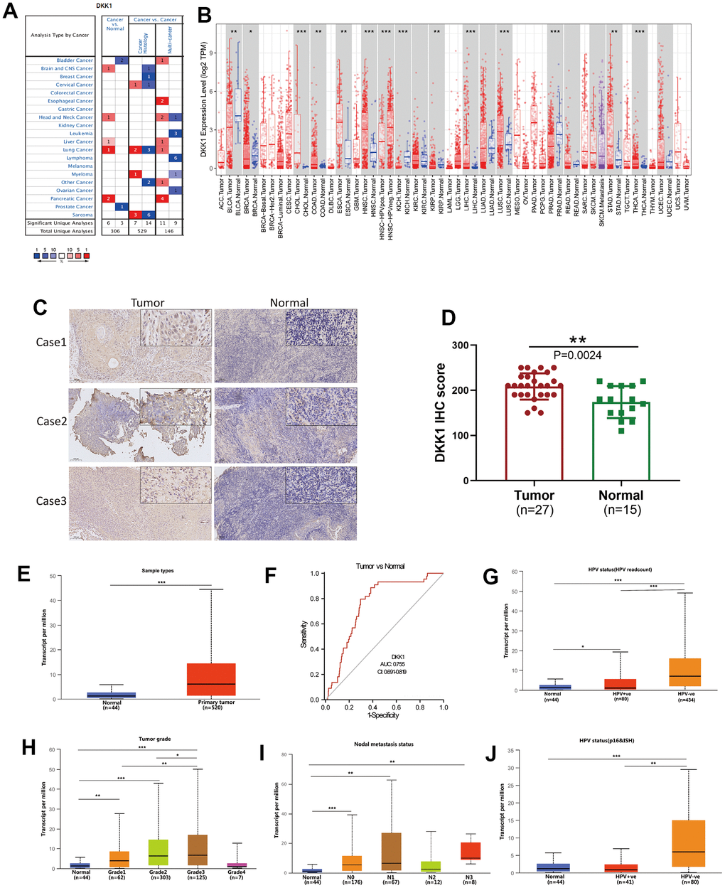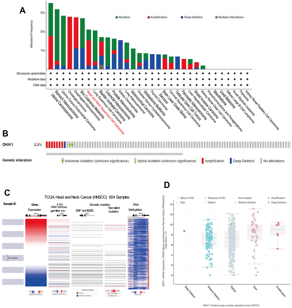 Gene expression, CNV, and mutation-feature analysis of DKK1 in HNSCC