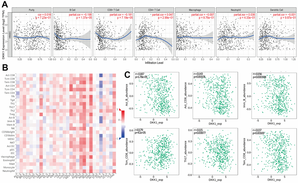 Correlation between immune infiltration and DKK1 expression in HNSCC