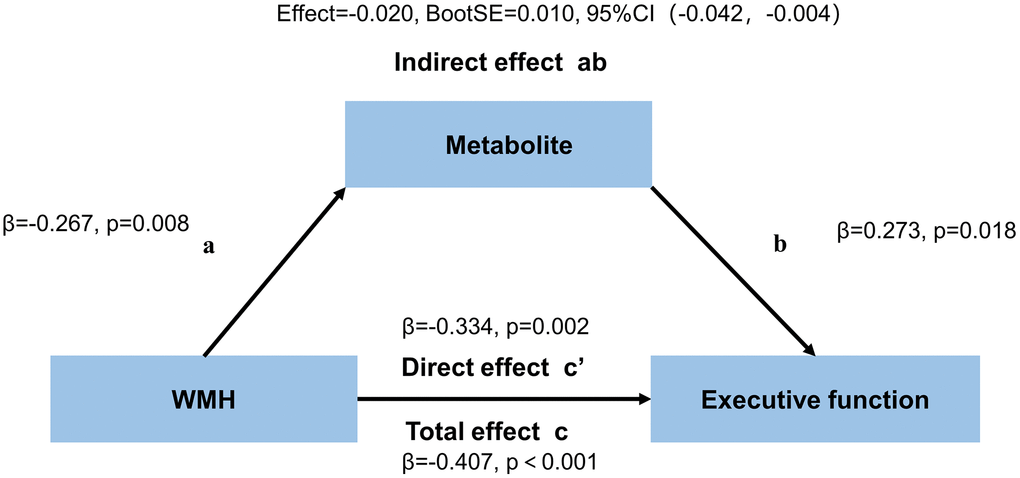 Mediation analysis of WMH volume on cognitive performance through neurometabolites