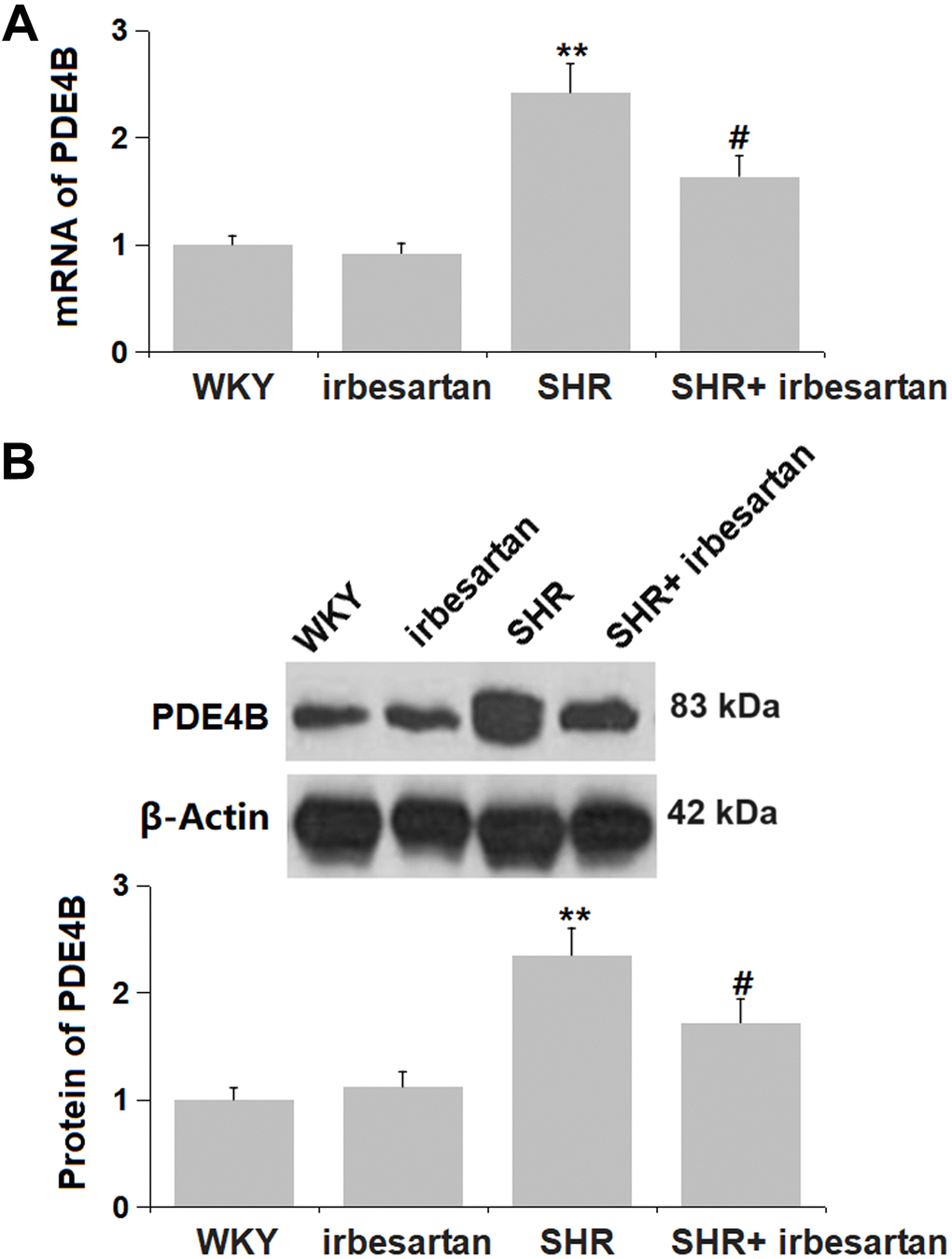 Irbesartan inhibited the increased PDE4B level in the hippocampus of SHR rats