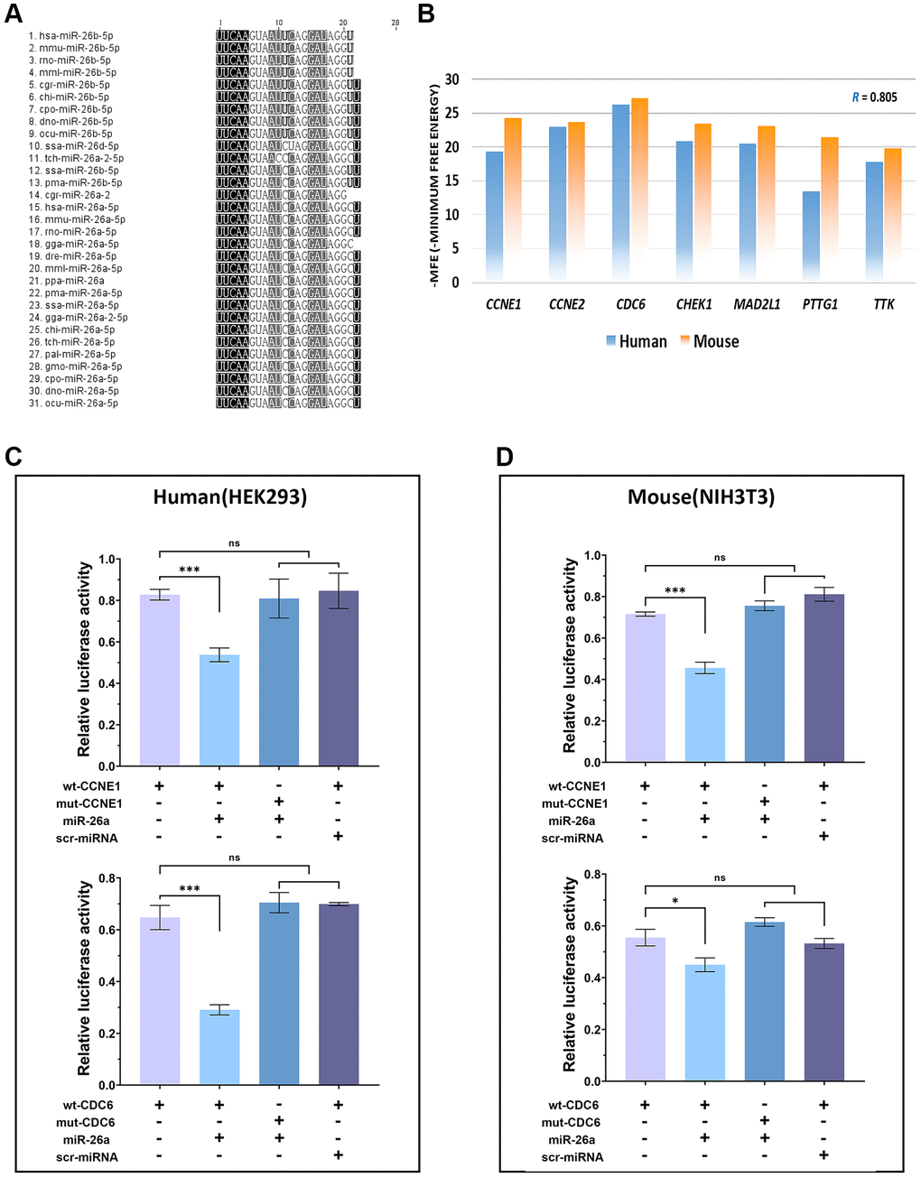 - 33. Zhang X, Xiao D, Wang Z, Zou Y, Huang L, Lin W, Deng Q, Pan H, Zhou J, Liang C, He J. MicroRNA-26a/b regulate DNA replication licensing, tumorigenesis, and prognosis by targeting CDC6 in lung cancer. Mol Cancer Res. 2014; 12:1535–46. https://doi.org/10.1158/1541-7786.MCR-13-0641 [PubMed]