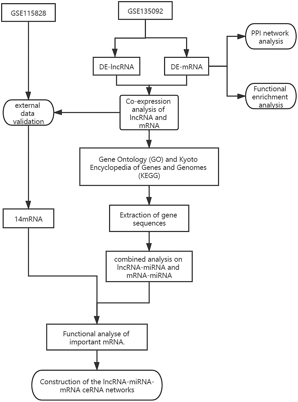 Based on the above results, we obtained all the significantly coexpressed lncRNAs and mRNAs from all the DEGs. We downloaded the cDNA sequences of the lncRNAs and mRNAs (according to the chromosome on which the gene was located and the start and end positions of the gene annotation information) from REST API endpoints (https://rest.ensembl.org/) provided by the Ensemble database for further analysis. All the sequences of human mature miRNAs were also downloaded from miRbase.