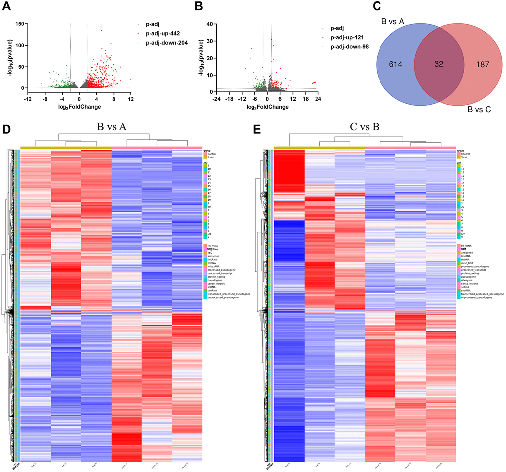 All data were analyzed by R software (version 4.2.2) or GraphPad Prism 8.0. One-way ANOVA was used to analyze the difference among multiple groups. The DESeq2 package (version 1.38.3) of R software is used for Wald test of sequencing data [12]. The p-values are calculated based on Fisher test of negative binomial distribution. The adjusted p-values and FDR values are corrected by the BH algorithm for multiple hypothesis testing. P < 0.05 was considered statistically significant. In the statistical analysis of mRNA sequencing results, when P.adj <0.05 it is considered to be statistically significant.