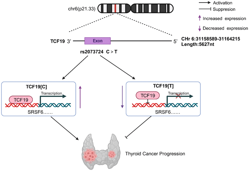Our study first highlights that TCF19 and missense variation (rs2073724) of TCF19 are potential prognostic biomarkers for thyroid cancer patients. These findings may have important implications for the development of new therapeutic strategies and biomarkers for thyroid cancer and the identification of patients at higher risk for poor outcomes.