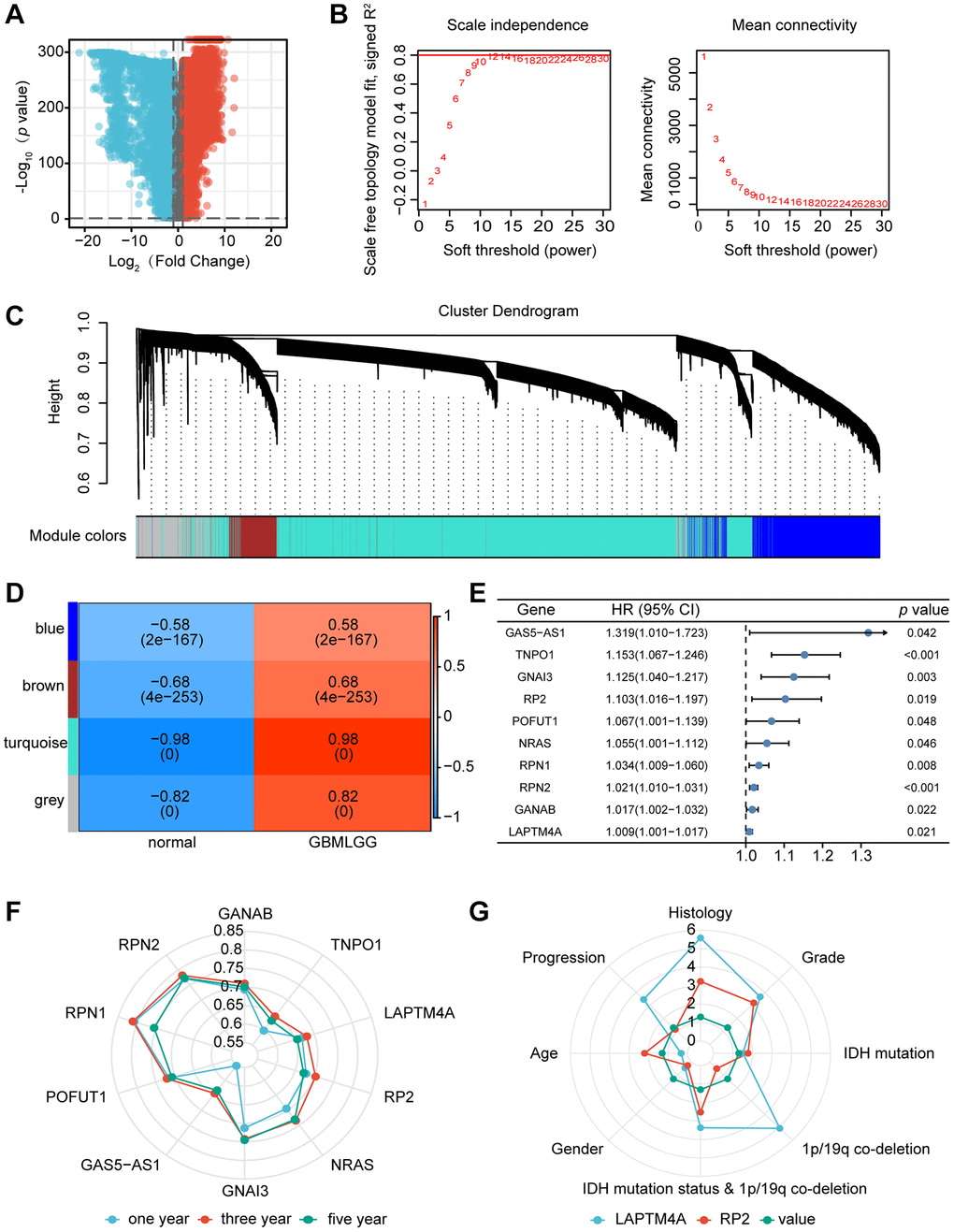 The recent advancements in high-throughput sequencing technology and large-scale cancer genomics databases have enabled a systematic and comprehensive analysis of genes from a machine-learning perspective. In our study, we leveraged the integration of TCGA and GTEx databases and performed WGCNA analysis using differentially expressed genes to identify the modules most relevant to gliomas. Subsequently, through KM survival analysis and the construction of a univariate and multivariate COX regression model, followed by a comparison of clinical significance, LAPTM4A emerged as the most impactful gene.