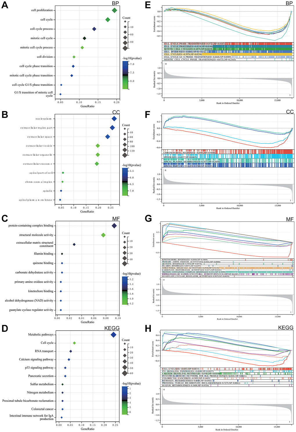 As elegantly illustrated in Figure 2A–2C, based on Gene Ontology (GO) analysis, the enriched terms predominantly revolved around key biological functions including cell cycle, cell reproduction and nuclear content containing protein complexes.