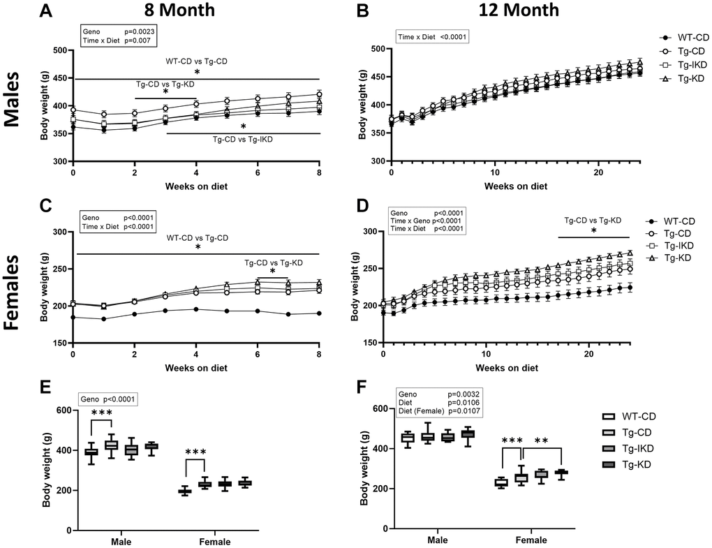 | WT-CD | Tg-CD | Tg-IKD | Tg-KD | WT-CD | Tg-CD | Tg-IKD | Tg-KD | Sex | Geno | Diet | S × G1 | S × D2 | |||||||||||||||||||||||||||||||||||||||||||||||||||||||||||||||||||||||||||||||||||||||