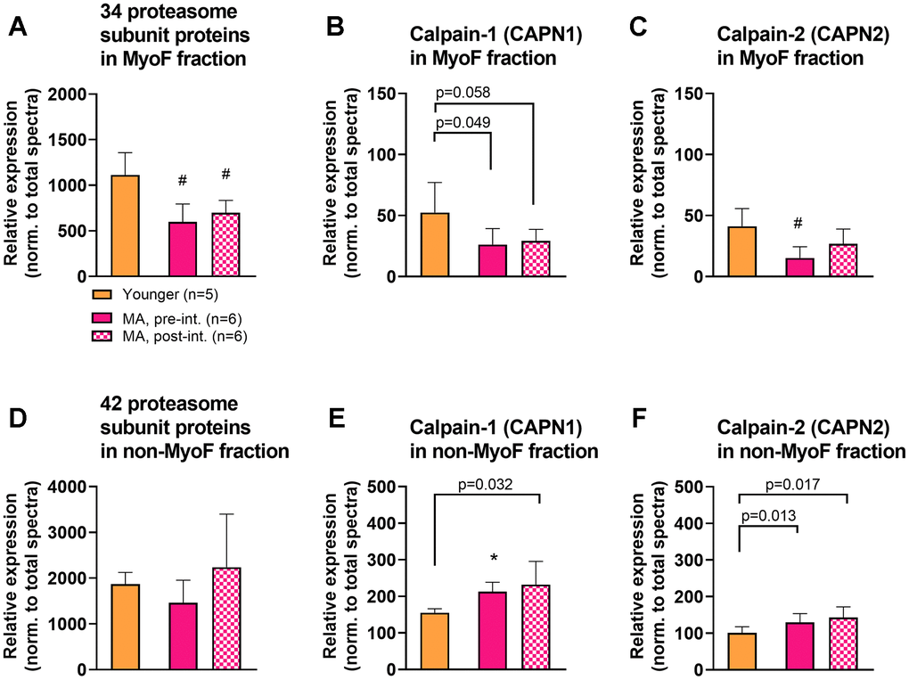 MyoF and non-MyoF protein differences in MA (pre-intervention) versus Y