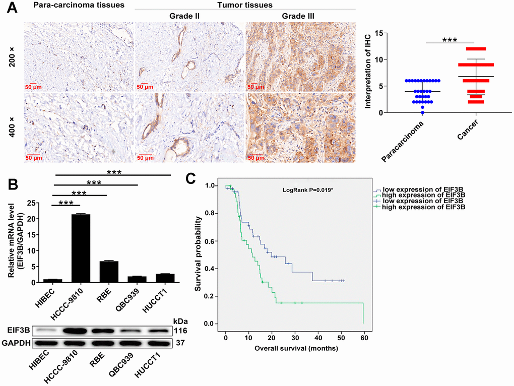 Increased EIF3B expression in cholangiocarcinoma predicted poor patient overall survival (OS)