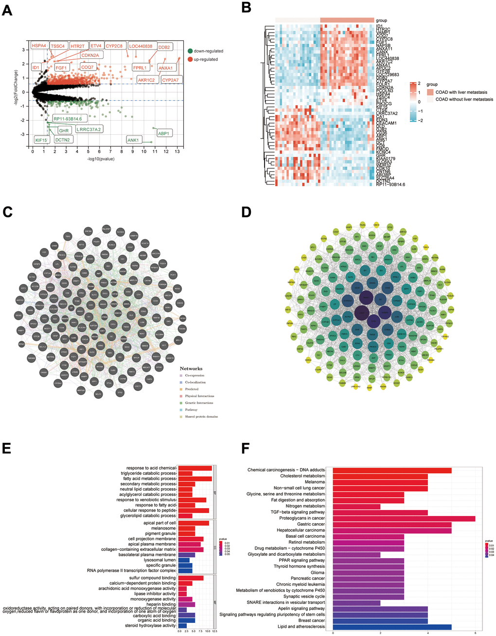 Regarding metastasis, the liver is one of the most susceptible organs in COAD patients, and liver metastasis is one of the main causes of the high mortality rate among COAD patients. In this work, we sought to forecast the occurrence of liver metastases in COAD patients using the DPM. However, we could not do so with adequate accuracy. The GSE6988 dataset was employed to explore mechanisms of liver metastases in COAD. We screened DEGs in COAD samples with liver metastases and COAD samples without liver metastases. Build protein-protein interaction (PPI) network and find core genes through the GeneMANIA database and Cytoscape software. Perform GO and KEGG enrichment analysis of DEGs by R.