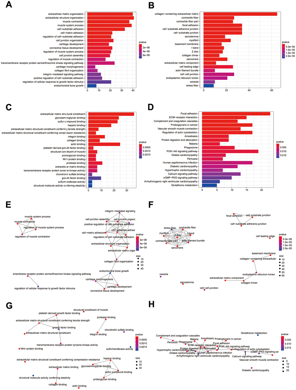 Figure 3A–3D illustrates the enrichment results for GO and KEGG. Results of KEGG enrichment analysis demonstrated that DEIGRC was mainly enriched in the Calcium signaling pathway, Glutathione signaling pathway, cGMP-PKG signaling pathway, etc.