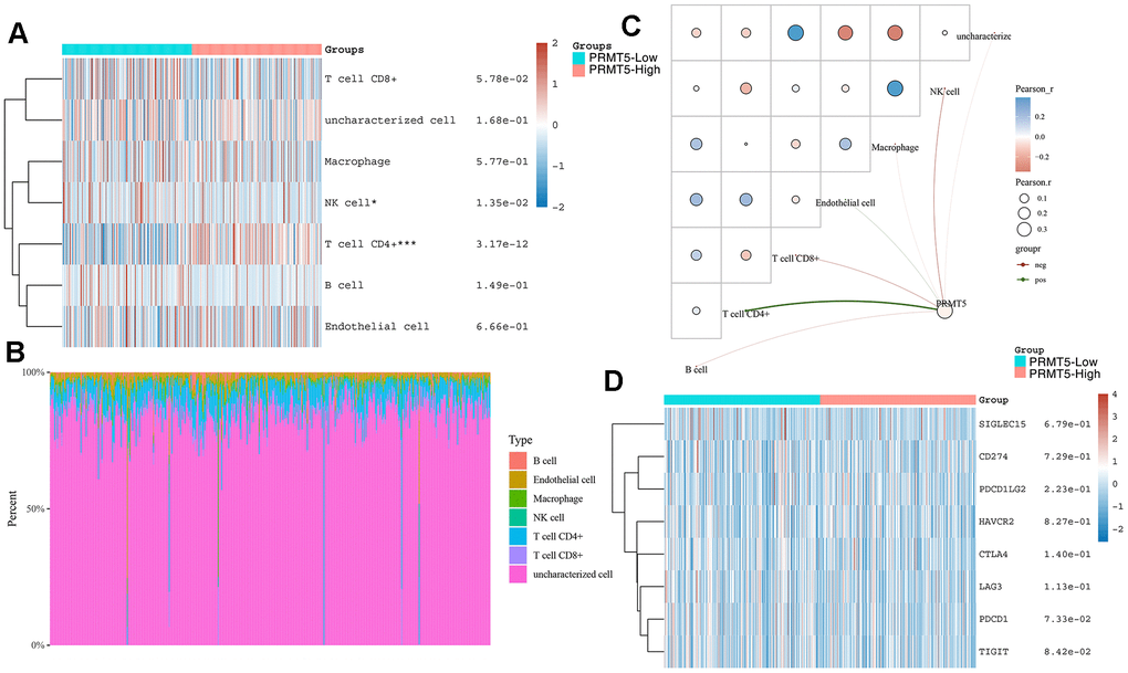 Correlation of PRMT5 expression with immune cell infiltration and immune checkpoint expression