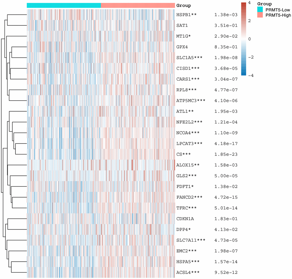 Here, we found that PRMT family members are significantly overexpressed in HNSC and that PRMT5 may serve as an independent prognostic factor in HNSC. We found that PRMT5-regulated differential genes were significantly enriched in tumor-associated signaling pathways such as IL-17 and p53. And we also found that the expression of PRMT5 in HNSC was significantly correlated with immune cell infiltration, m6A as well as the expression of ferroptosis-related genes, and drug sensitivity. In summary, the PRMT family plays an important role in tumorigenesis and development, and its abnormal expression and activity regulation are closely related to the expression of tumor-related genes and cellular functions. So in-depth study of the function and regulatory mechanism of PRMT family in HNSC is of great significance to understand the mechanism of tumorigenesis and development, and to provide new targets and strategies for tumor diagnosis and treatment.