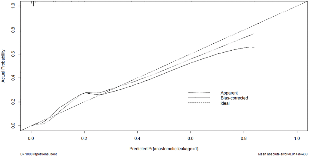 In conclusion, this study addresses a critical gap in the preoperative management of patients with esophageal cancer by developing a novel nomogram model to assess the risk of anastomotic leakage (AL) following esophagectomy. Our findings demonstrate the effectiveness of this diagnostic nomogram, which incorporates key risk factors, in accurately predicting the occurrence of AL in this patient population. By leveraging clinical data and patient characteristics, our nomogram offers clinicians a valuable tool for risk stratification and early intervention, ultimately improving patient outcomes and optimizing postoperative care. Moving forward, further validation and implementation of this nomogram in clinical practice hold the potential to enhance surgical decision-making, personalize treatment strategies, and reduce the burden of AL-associated complications in patients with esophageal cancer. However, due to the limited sample size, patients were not divided into training sets and validation sets, which we will improve in the future.