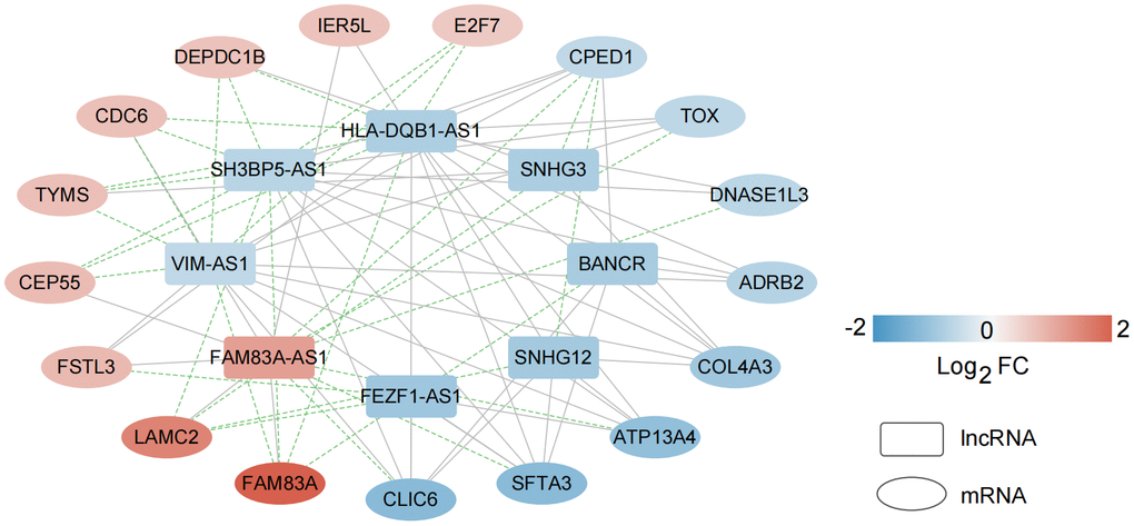 Construction of a co-expression network based on characteristic mRNAs and lncRNAs