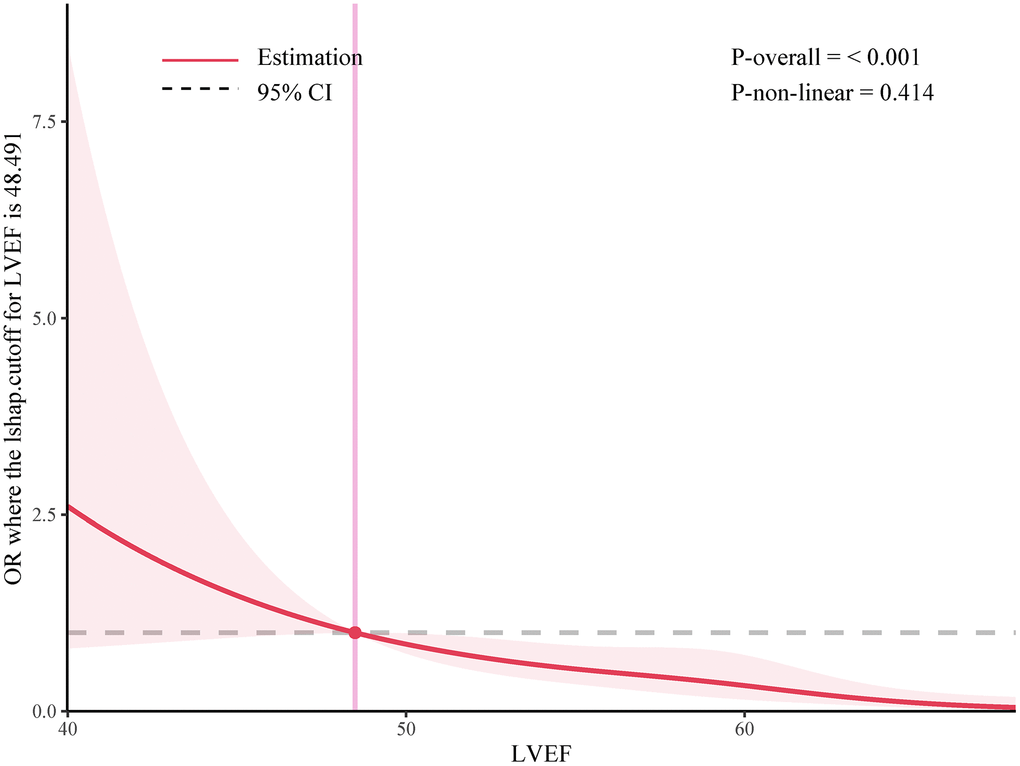 Statistical analyses were conducted using SPSS version 17.0 software (SPSS Inc., Chicago, IL, USA) and R version 4.1.0 (R Foundation for Statistical Computing, Vienna, Austria). Continuous variables conforming to normal distribution were shown as mean ± standard deviation (SD) and compared using Student’s t-test or One-way ANOVA. Categorical variables were presented as percentages and analyzed by using Chi-square test. After adjusting for confounding factors, multivariable ordinal logistic regression model was used to analyze the association between LVEF and functional outcome at three months based on variables with a p-value < 0.05 in univariate analyses. A nonlinear logistic regression with restricted cubic spline (RCS) was used to examine the shape of the association between LVEF and primary outcome with four knots (defined at the 5th, 35th, 65th, and 95th percentiles). Subgroup analysis was also performed to further verify the reliability and practicability of the results and the multiplicative interaction terms were tested by the likelihood ratio test. A 2-tailed p-value < 0.05 was considered as the level for statistical significance.