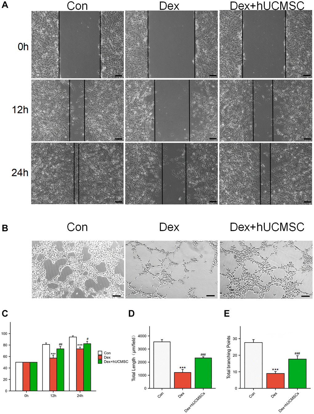 hUCMSCs improved the migration ability and angioplasty of Dex-treated BMECs