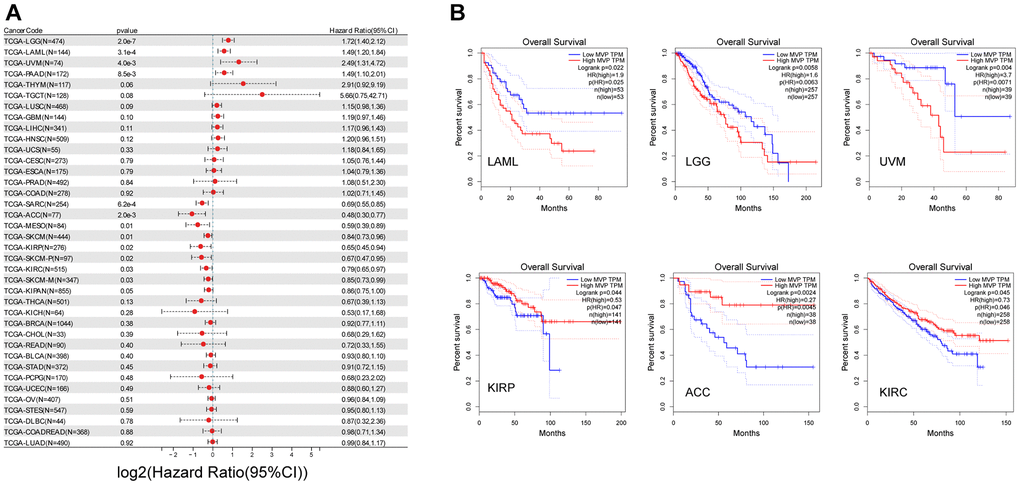 Prognostic analysis of MVP in multiple human cancers