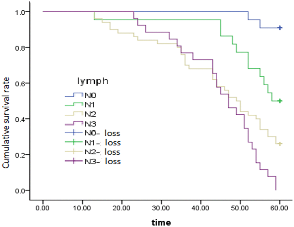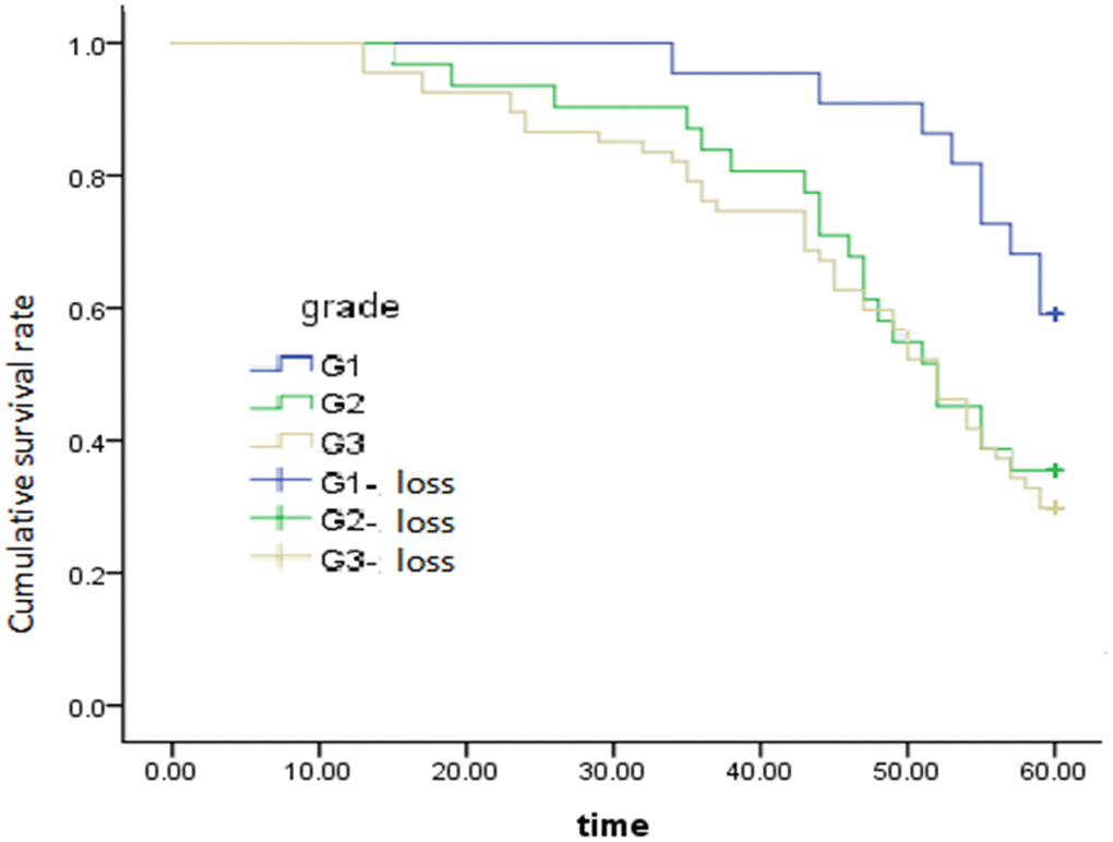 The follow-up of 120 patients was conducted over a period of 60 months through telephone, text message or outpatient visits. The observation time started at discharge after the hospital operation and ended at 5 years. The outcomes included survival, death and loss to follow-up. Overall survival (OS) was defined as the time span between surgery and death.