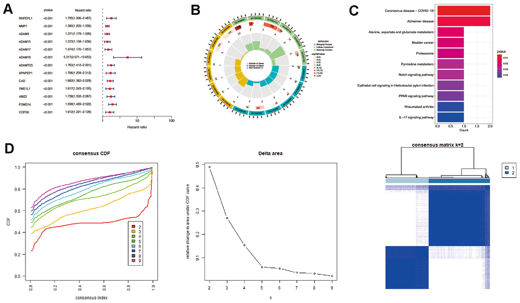 A MMPs-related prognostic signature (including RNPEPL1, ADAM15, ADAM18, ADAMTS5, CAD, YME1L1, AMZ2, PSMD14, and COPS6) was identified. These findings could potentially impact the predictability of the prognosis and treatment of HCC.