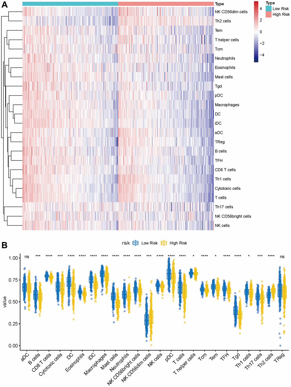 The landscape of immune cell infiltration between the high- and low-risk group