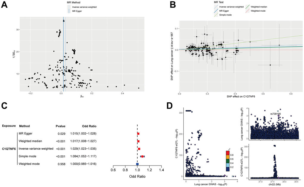 Mendelian randomization (MR) is as a valuable tool for inferring causal relationships between exposure and outcome by leveraging Genome wide association study (GWAS) data. The result of MR suggested that C1QTNF6 expression had the increased risk of lung cancer although there was no evidence of co-localization. The MR result was consistent with the expression and prognosis of C1QTNF6 in LUAD.