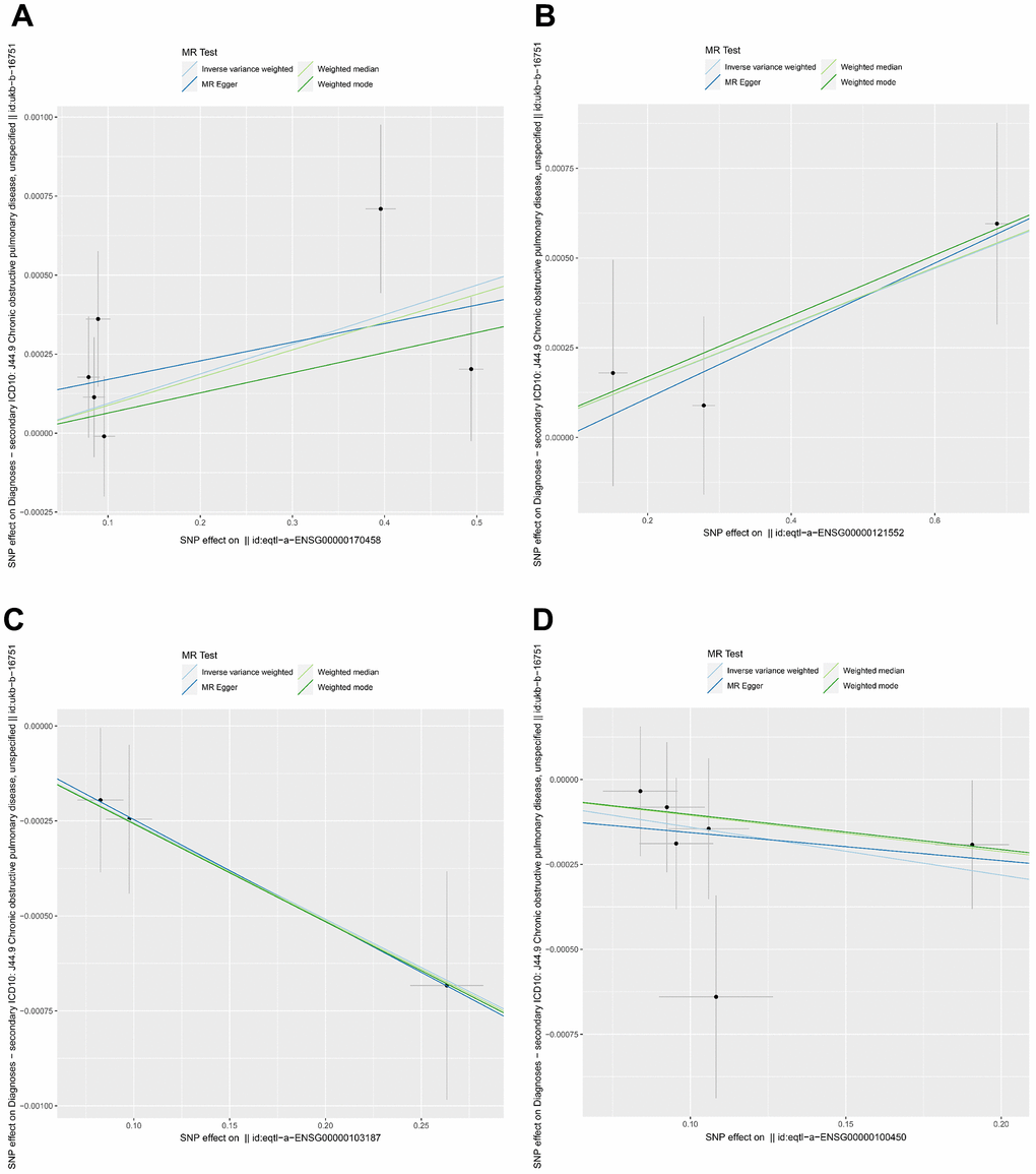 In this study, we identified marker genes and major pathways that could be enriched for immune cell subtypes associated with COPD by analyzing scRNA-seq data. Based on Mendelian randomization analysis of eQTLs and GWAS data, the screened genes GZMH, COTL1, CSTA, and CD14 provided evidence for a causal effect on the development of COPD. The association of these four key genes with COPD-causing genes and the potential informational pathways enriched by these genes could provide additional information on the development of COPD.