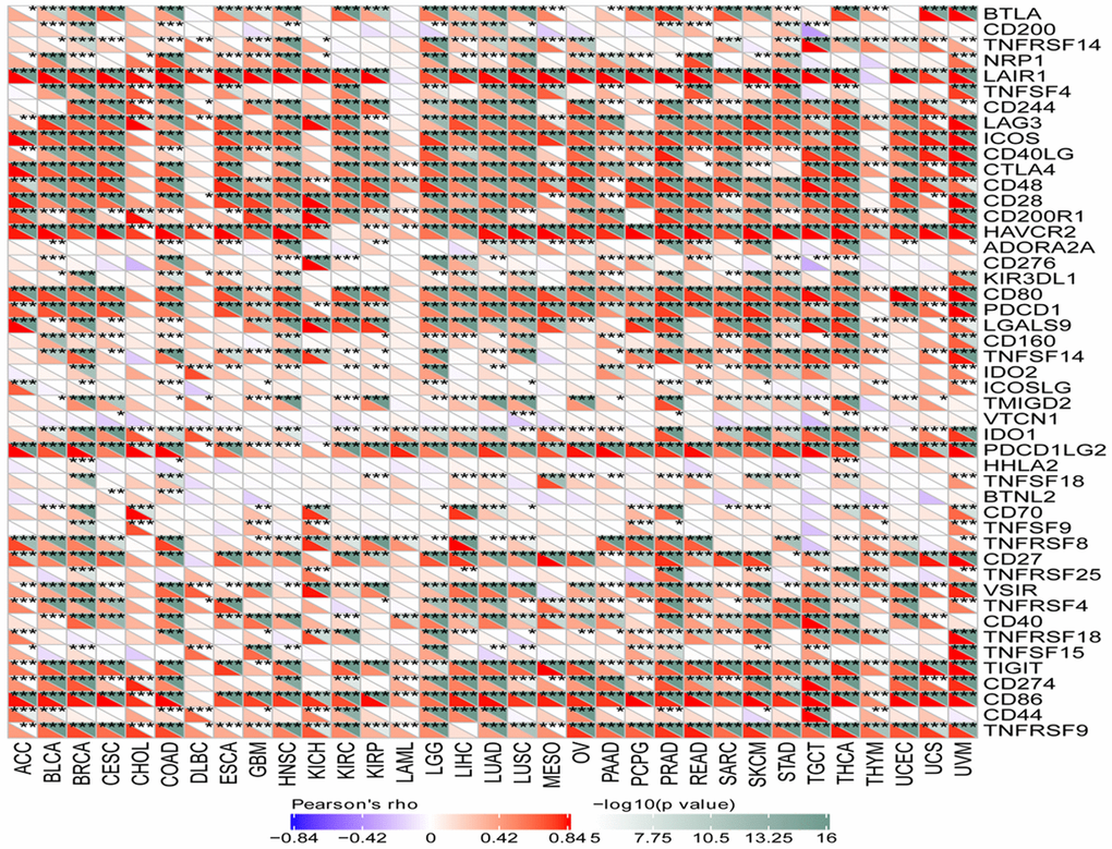 The mutation of genes within malignant cells, such as point mutations, gene fusions, and deletion mutations, can encode neoantigens. The neoantigens’ docking affinity score was computed according to antigenic epitopes comprising 8 to 11 amino acids and epitopes with a score below 500 nm were categorized as neoantigens. Neoantigens were sorted based on their docking affinity, variant allele frequency, and antigenicity index values. Consistent with the research methodology of a previous study [13], the count of neoantigens in tumor samples were measured with ScanNeo tool. Additionally, the correlation between the expression of SLAMF8 and the quantity of antigens was examined. Furthermore, an investigation was conducted to examine the correlation between the expression of SLAMF8 and the top 40 immune checkpoint genes. The expression levels of immune checkpoint genes were individually abstracted, and their correlation with SLAMF8 expression was determined. Remarkably positive correlations were indicated by p < 0.05 and R > 0.20.