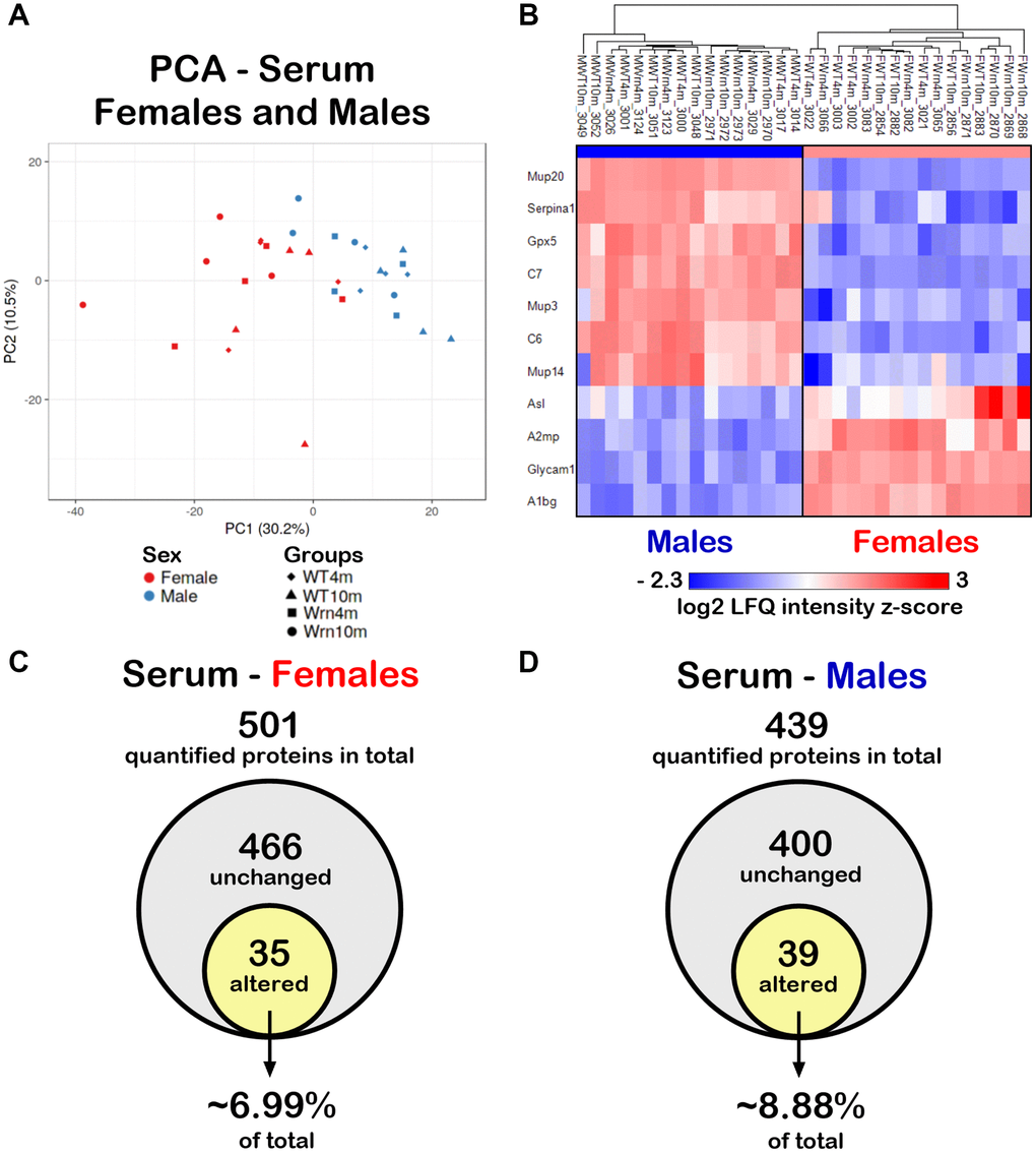 Impact of the Wrn helicase mutation and age on the serum proteome of females and males