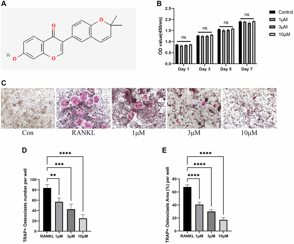 Except for those specifically indicated, all reagents used in cell culture were purchased from Thermo Fisher Scientific (Waltham, MA, USA). Recombinant Murine RANKL and M-CSF were obtained from R&D systems (Minneapolis, MN, USA) and were dissolved in 0.1% BSA to create a stocking solution with a concentration of 10 ng/μl. Corylin (CL; C20H16O4; MW: 320.34) with a purity of 99.97% was produced by MedChemExpress (Shanghai, China) and were dissolved in 0.1% BSA to create a stocking solution.