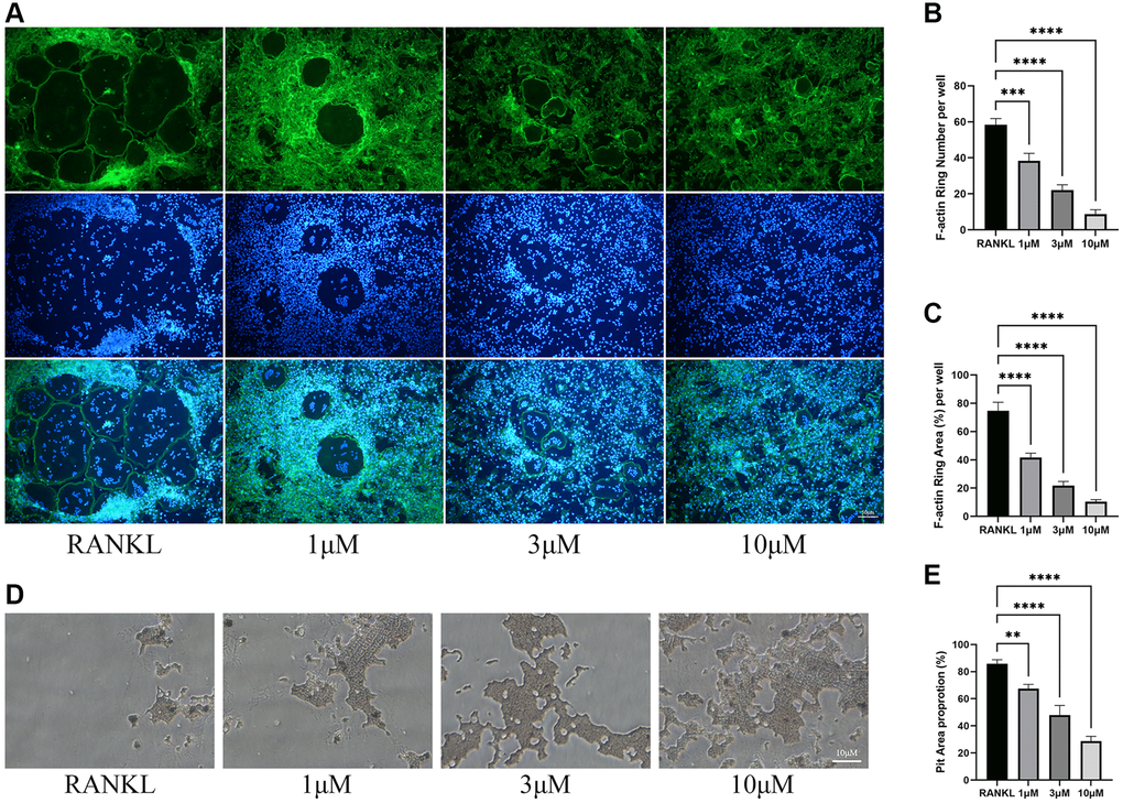 The differentiated osteoclasts were induced by the above method and then reseeded on bone plate (Corning Incorporated Life Science, NY, USA). Following 3 days of culture, 5% sodium hypochlorite was used to remove osteoclasts and the resorption pits in bone plate were detected.