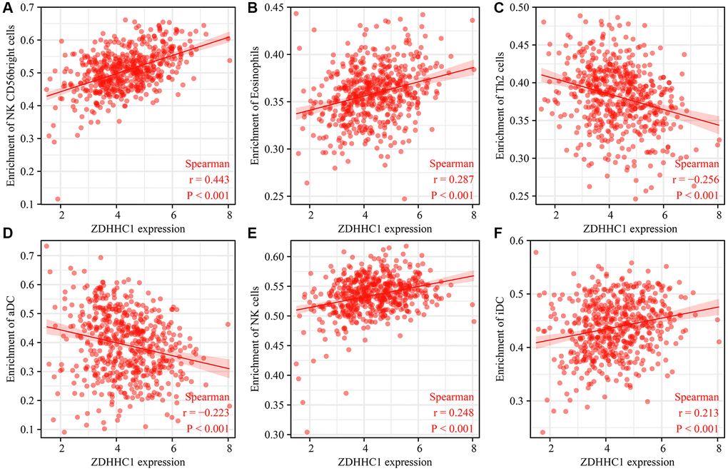 The relationship between gene expression and tumor-infiltrating immune cells or immune markers was assessed with the TIMER database [13]. The correlation between ZDHHC1 expression and the levels of tumor-infiltrating immune cells or cell markers in UCEC was verified using the correlation analysis module.