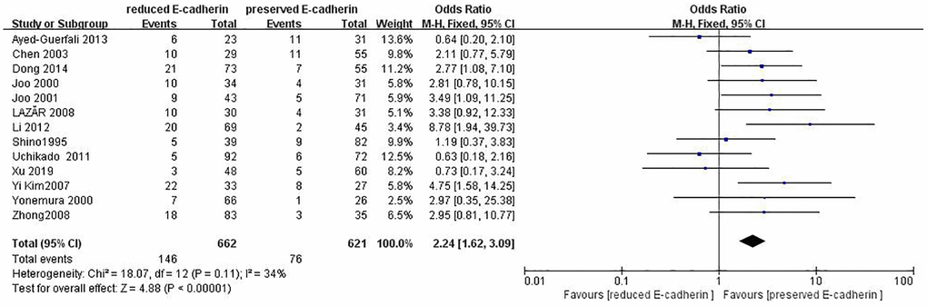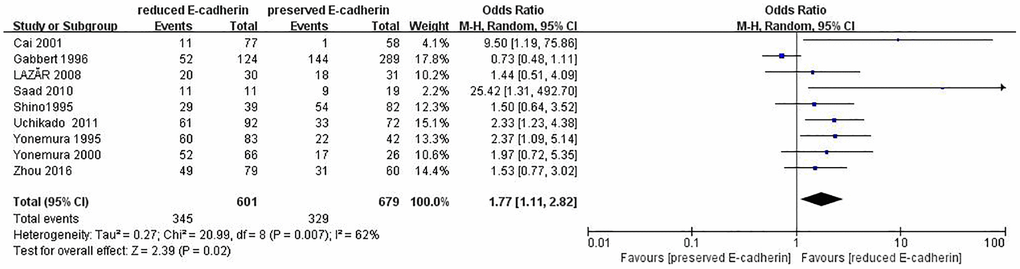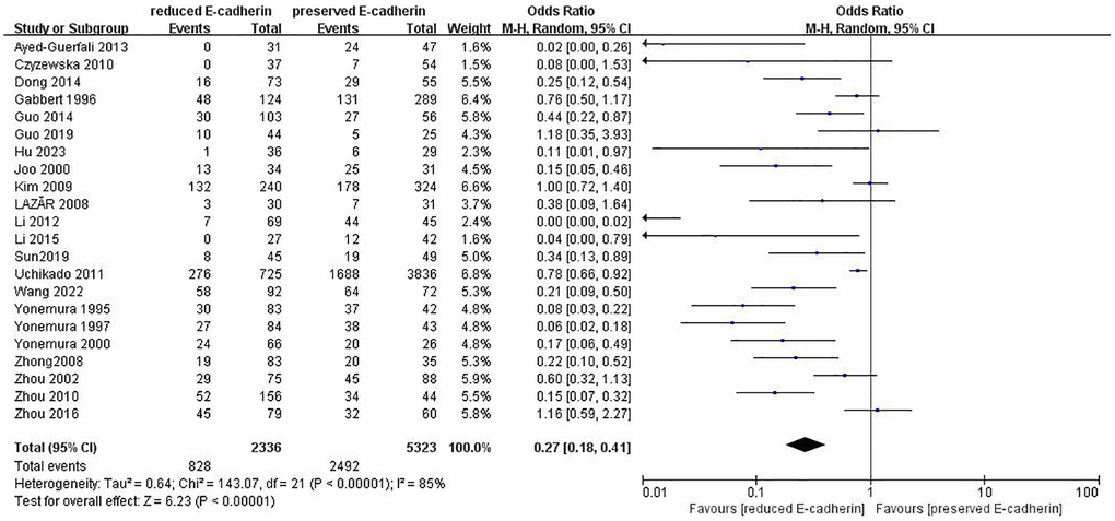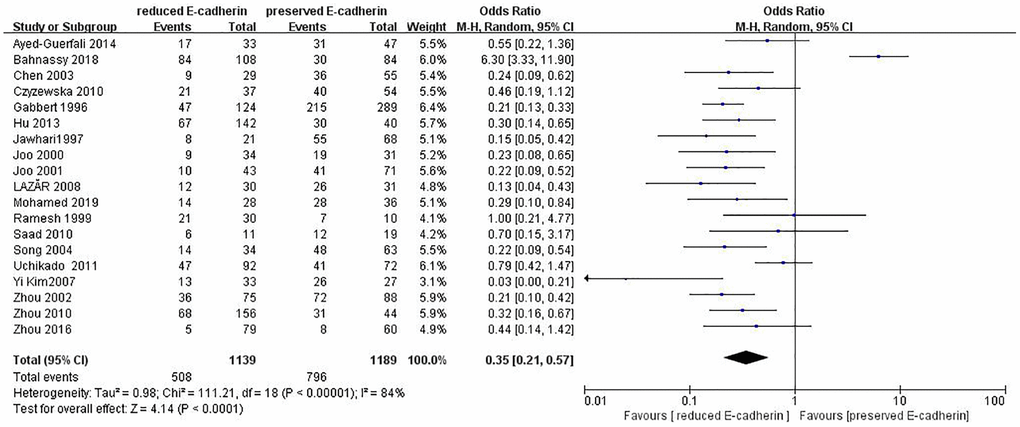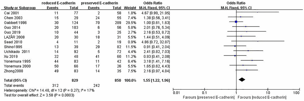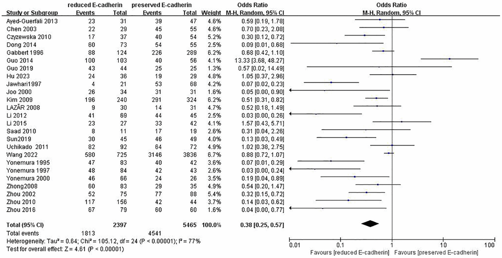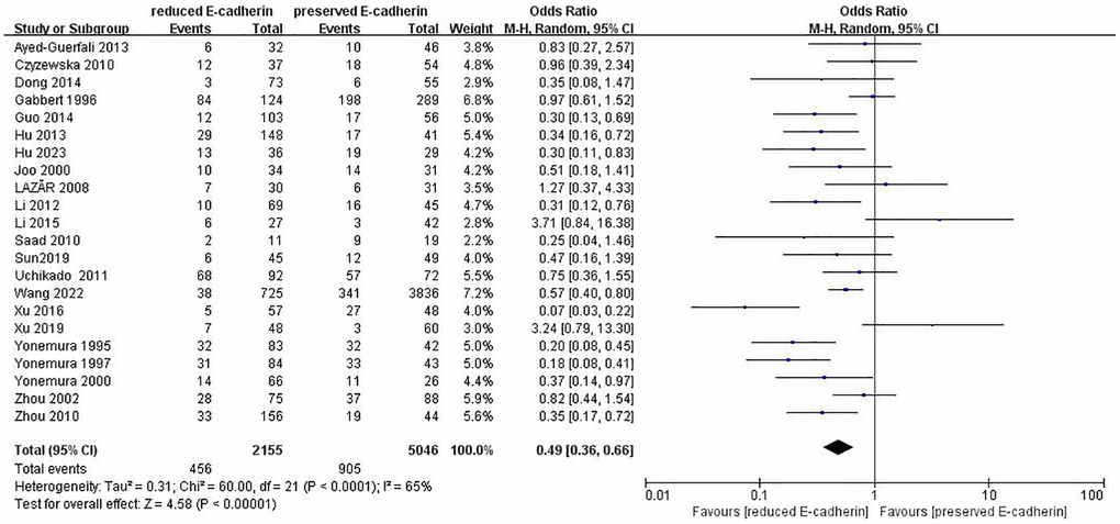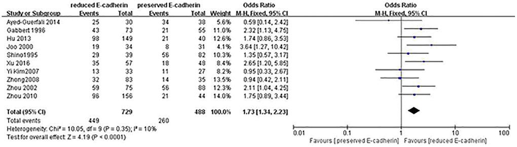 Exclusion criteria: (1) Abstracts, reviews, editorials, case reports, as well as letters; (2) Study subjects are cell lines, and animals; (3) Overlapping publication; (4) Information about E-cadherin expression, OS, as well as clinical characteristics was unavailable.