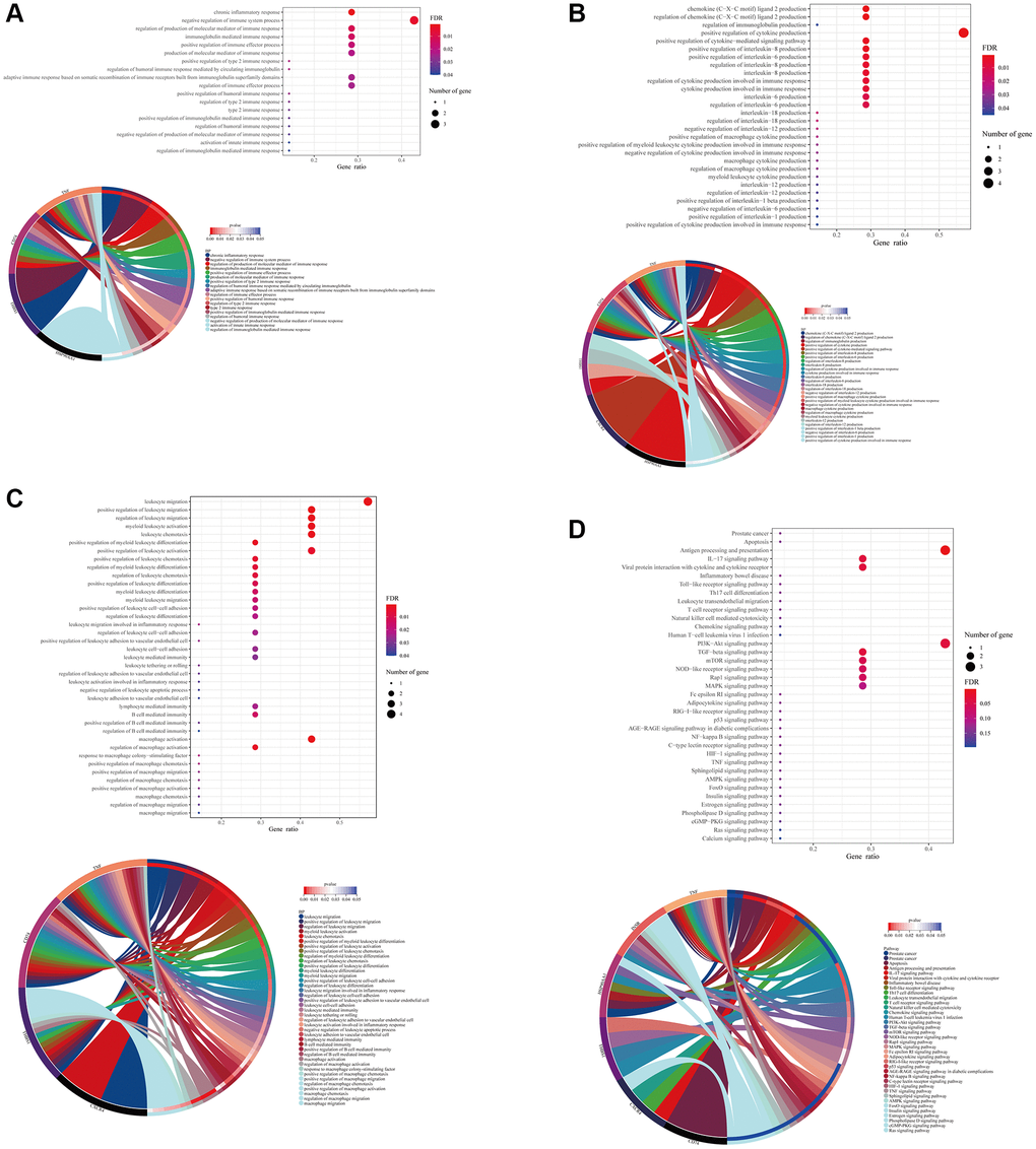 The targets were imported into the “ClusterProfiler” package [26] and “GOplot” package [27] in R language for GO and KEGG enrichment analysis and visualization, the processes and pathways with p-value < 0.05 were considered as statistically significant. The results were presented as bubble plots and Circos plot.