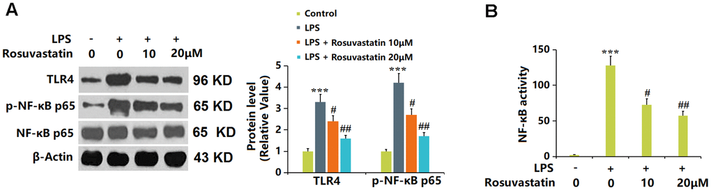 Rosuvastatin inhibited LPS-induced activation of NF-κB in RAW 264.7 macrophages.