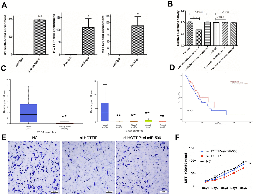 The oncogenic functions of HOTTIP are partially mediated through the negative regulation of miR-506