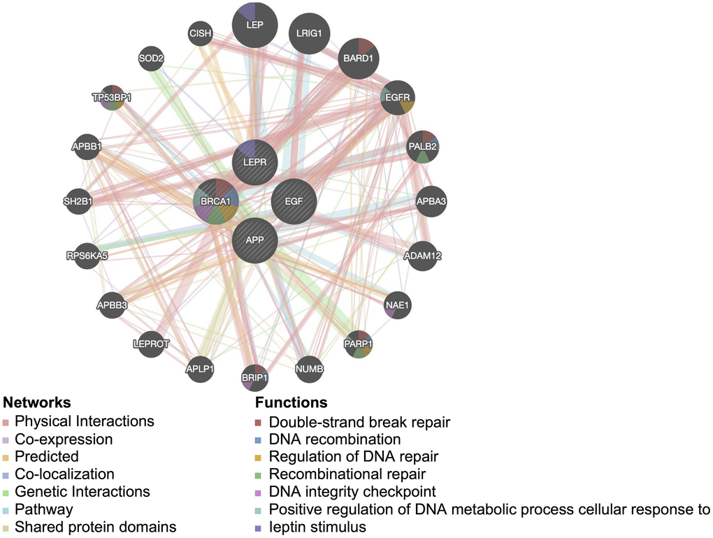 When comparing potential molecular biomarkers for Parkinson’s Disease (PD) like EGF, BRCA1, LEPR, and APP with recognized biomarkers, it’s essential to understand the context of their roles and advantages in PD. The recognized biomarkers for PD primarily involve α-synuclein, LRRK2 gene mutations, and others that directly relate to the pathogenesis of PD. The new above potential candidates are implicated in a diverse range of biological processes and could offer new insights or advantages in understanding, diagnosing, or treating PD. EGF has been implicated in neurogenesis and neural repair. It can play a role in protecting dopaminergic neurons from degeneration [34], which is a hallmark of PD. If proven to be a reliable biomarker, EGF could serve as a tool for assessing the efficacy of therapies designed to enhance neuronal repair and survival. Additionally, it may offer insights into disease progression related to neuronal loss. While BRCA1 is well-known for its role in hereditary breast and ovarian cancer, there’s emerging evidence that it may also play a role in neuronal health, particularly in DNA repair mechanisms [35]. BRCA1 as a biomarker could indicate the integrity of DNA repair mechanisms in neurons, offering a novel therapeutic target or diagnostic criterion focusing on genomic stability in PD. Leptin is involved in energy homeostasis and has been shown to have neuroprotective effects. The leptin receptor’s role in PD could relate to metabolic changes or inflammation associated with the disease [40]. LEPR could offer insights into the metabolic and inflammatory aspects of PD, potentially leading to biomarkers that predict disease progression or response to therapies addressing these aspects. APP is famously associated with Alzheimer’s disease, but its role in PD might relate to Aβ accumulation and its effects on neuronal health [44]. Understanding APP’s role in PD could lead to biomarkers for neurodegenerative processes that overlap with other conditions like Alzheimer’s, offering a broader approach to diagnosing and treating neurodegeneration. Compared to recognized PD biomarkers focused on the disease’s core pathophysiological features (e.g., α-synuclein aggregation), these candidates could provide a broader understanding of PD’s impact on neuronal health [45], metabolism [46], DNA repair [47], and amyloid processing [48]. They might offer new avenues for therapeutic intervention, early detection, and monitoring of disease progression by targeting different aspects of the disease’s pathology. However, the utility of these potential biomarkers in PD still requires substantial research and validation to determine their effectiveness and advantages over existing markers.