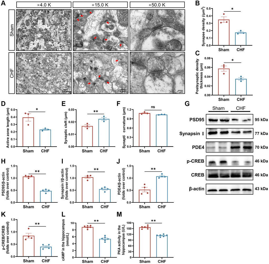 CHF alters synaptic ultrastructure, impairs synaptic plasticity, and disrupts the cAMP signaling pathway