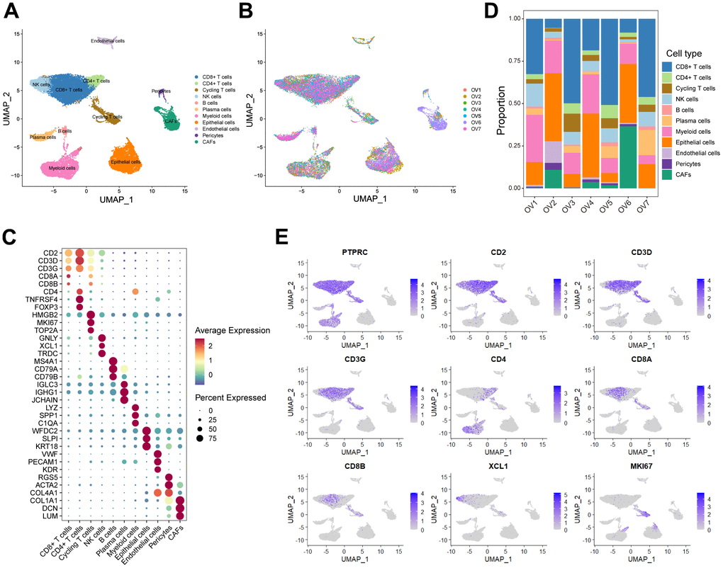 - 9. Xu J, Fang Y, Chen K, Li S, Tang S, Ren Y, Cen Y, Fei W, Zhang B, Shen Y, Lu W. Single-Cell RNA Sequencing Reveals the Tissue Architecture in Human High-Grade Serous Ovarian Cancer. Clin Cancer Res. 2022; 28:3590–602. https://doi.org/10.1158/1078-0432.CCR-22-0296 [PubMed]
