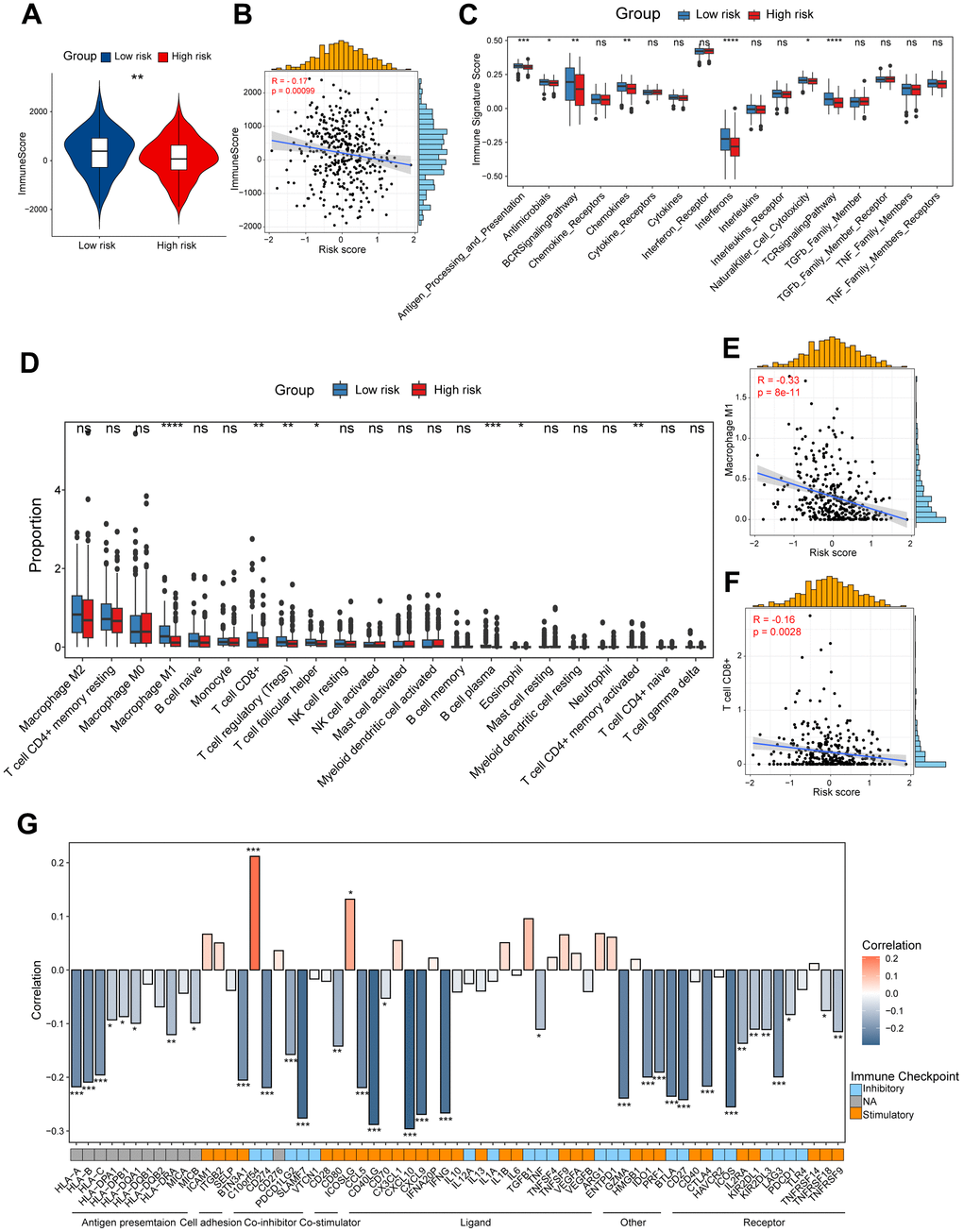 We used the “estimate” algorithm to calculate immune scores for ovarian cancer samples [19]. To analyze the infiltration of immune cells, we used TIMER2.0, an algorithm that efficiently predicts immune cell infiltration based on bulk tumor gene expression data (http://timer.cistrome.org/). Using CIBERSORT, we quantified the relative abundance of 22 immune cells for each sample. Additionally, we gathered a collection of tumor immunomodulators from literature and calculated the correlation between the risk score and these modulators.