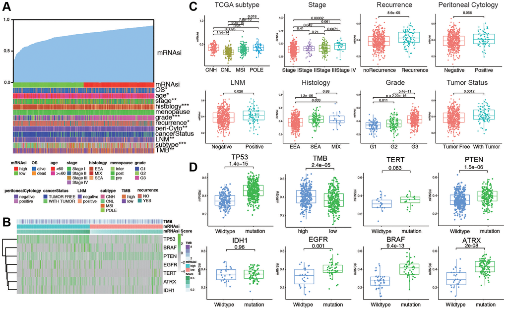 Distribution of mRNAsi in patients with different clinicopathological features and mutation status