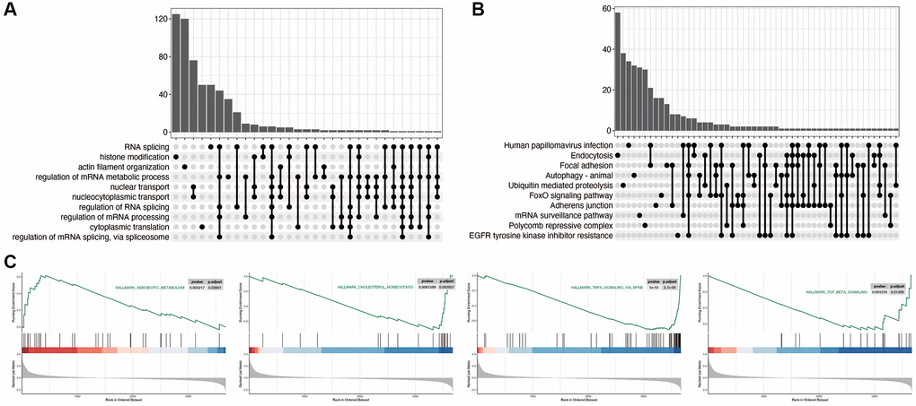 As shown in Figure 2A, 2B, we first explored the relevant functional pathways in diabetic nephropathy compared with the control group, and found that RNA splicing, histone modification, Focal adhesion and FoxO signaling pathways were mainly enriched in diabetic nephropathy. We also subsequently explored the pathways related to disulfidptosis in diabetic nephropathy. As shown in Figure 2C, the xenobiotic metabolism pathway is activated, while the other three pathways are inhibited.